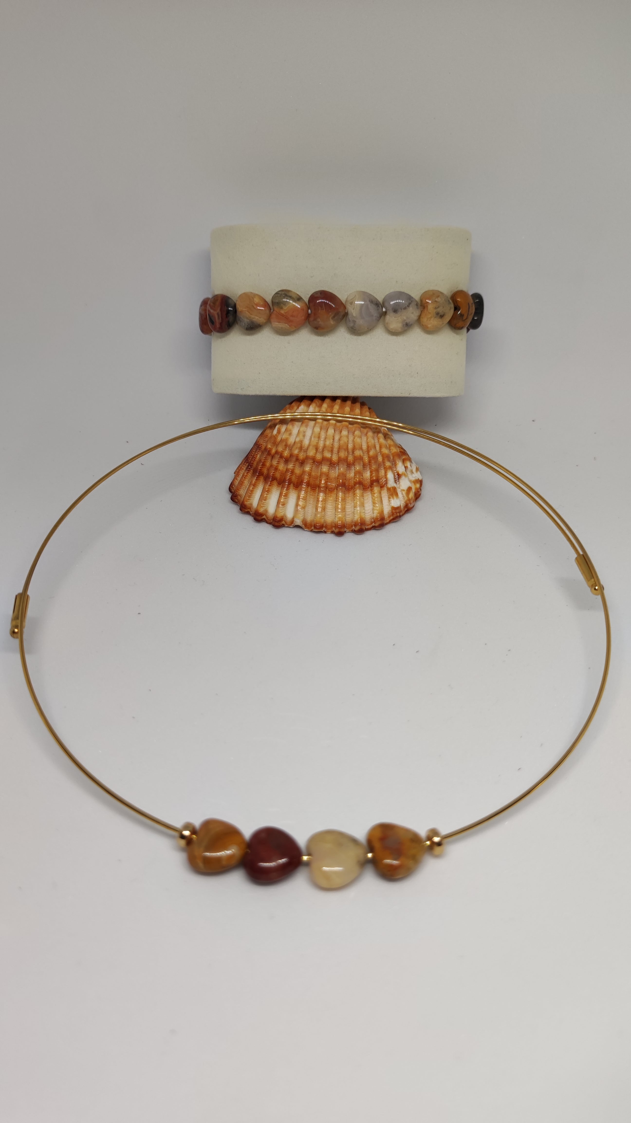 Création Unique Ras-de-cou plaqué or, accompagné de son Bracelet en Agate Dentelle