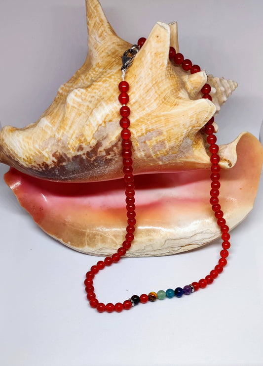 Collier Pierre de soleil et Pierre de lune avec son pendentif cœur de Jaspe