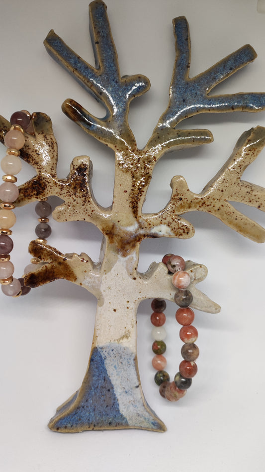 Nous sommes ravis de vous présenter une toute nouvelle collection artisanale, alliant la beauté intemporelle de la céramique modelée à la main et les énergies bienfaisantes des pierres naturelles de lithothérapie. Chaque pièce est conçue avec passion pour sublimer vos moments de bien-être ou compléter vos bijoux préférés.